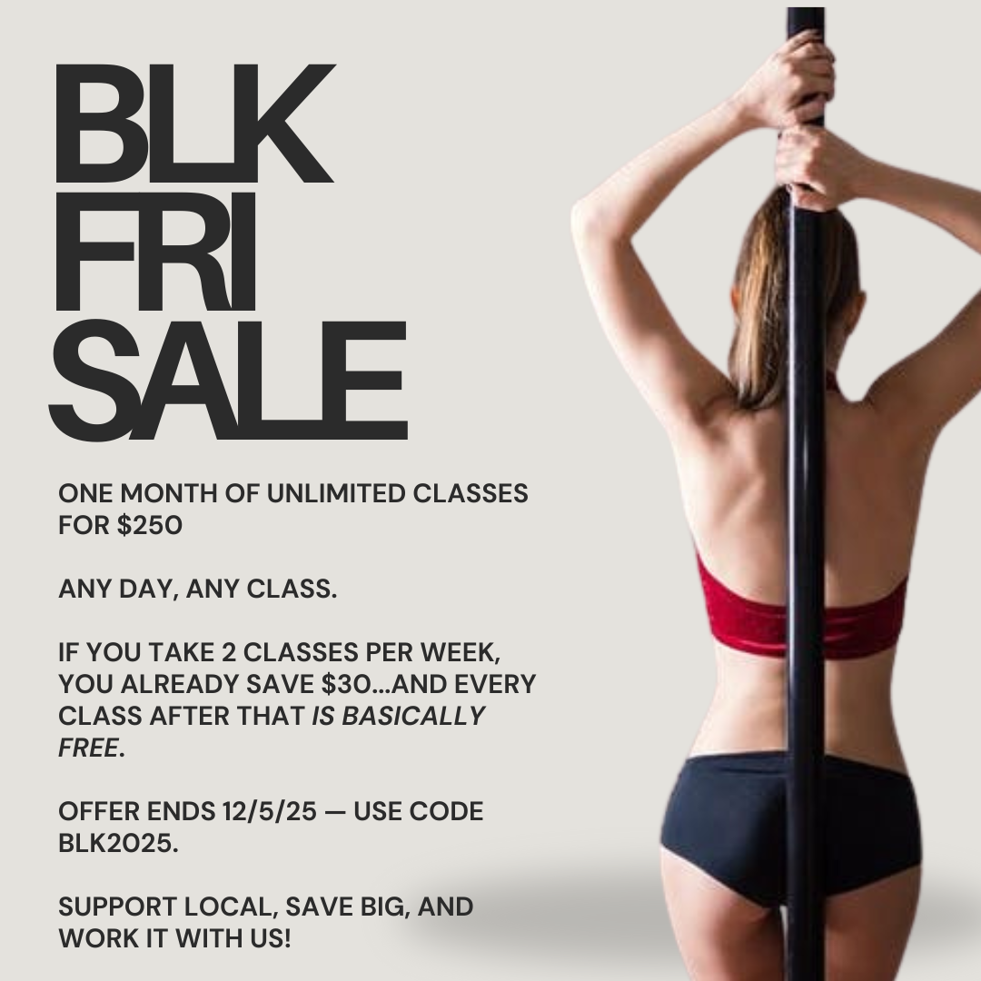 We are not just a Pole Dancing studio! Check out our barre-inspired (Tone & Tighten), cardio-dance (such as Burlesque Heels, Bellydance, Hip-Hop) and other fun non-pole classes!